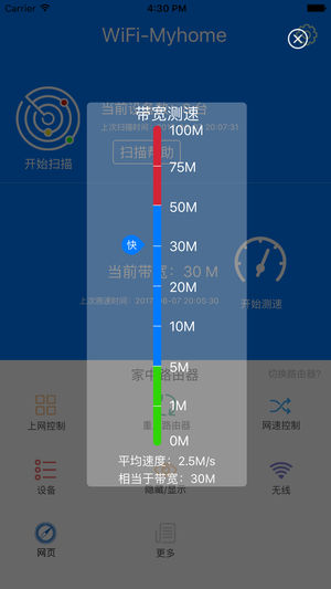 一、Wi-Fi扫描功能--超强防蹭网 防蹭网Wi-Fi扫描后,可增加备注功能,实时发现陌生设备; 无需配置路由器信息,无需依赖路由器,直接扫描当前所有正通过您路由器上网的所有设备信息;让蹭网者无处可藏,为您的网速保驾护航! 二、测试网速功能 实时网速测试功能,测算您当前的网络带宽; 三、防蹭网功能 1、通过开启上网控制功能,只有您允许的设备才可以使用您的网络,可疑设备就算连接到您的路由器也无法上网; 2、路由器隐身功能,将您的路由器隐藏起来,所有的上网设备都不能搜索到您的路由器,您可以在您自己的上网设备上,输入Wi-Fi名称密码直接上网;…