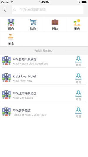 甲米中文离线地图是一款支持中文地名和酒店标注的地图。所有数据全部打包在应用中,在离线环境在完全可用,是去甲米旅游的必备工具。 主要特征包括: 1 地图数据完全离线 2 酒店全部中文标注,并提供酒店详细描述 3 部分重要地点中文标注 4 支持酒店查询,快速在地图上定位 5 支持景点、购物、美食、活动等信息在地图上的展示,并提供列表视图快速浏览 6 支持附近酒店、景点、购物、美食、活动的查询 7 支持离线路径规划