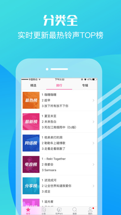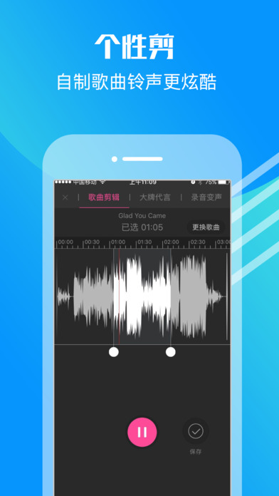● iPhone首创——无需连接电脑,手机直接设铃声! ● 涵盖800万高品质热铃,资源每日更新10000+,全网最多! ● 支持移动、联想、电信三网彩铃,支持铃声剪辑、语音搜歌、文字变铃声,功能强大! 【铃声最新】最新最火歌曲铃声,囊括欧美日韩、DJ舞曲、幽默搞笑、网络神曲、影视综艺、游戏动漫、老歌翻唱、短信闹铃,每日更新10000+,好听铃声多多! 【独家特色】独家合作曲目及铃声制作人,打造高雅品味铃声 ,天天动听! 【语音搜铃】最新上线一体化智能语音搜铃,说歌名、报歌手、哼旋律、放原声音乐都可以准确搜索到您要的铃声 【铃声制作】极简操作体验,铃声剪辑制作,文字变铃声统统都能搞定,最方便的手机铃声管家 【联系我们】 欢迎加入手机铃声伐木累,为您提供更棒的服务! 官方微信:彩铃小管家