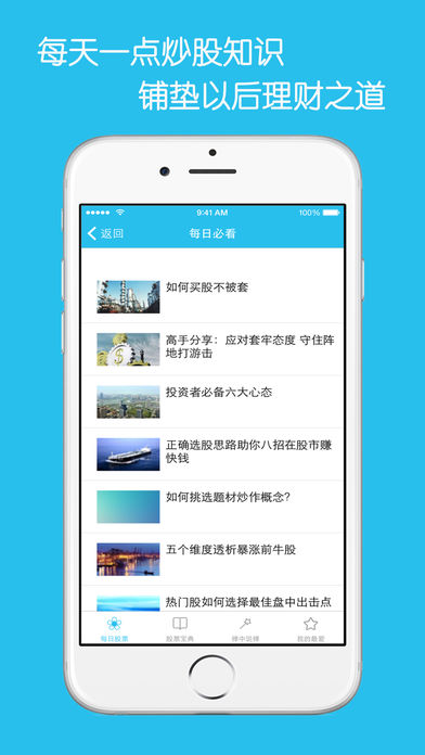 每天工作太累?想自己当老板?想钱生钱? 投资必定是一条捷径,可如何在股市有一番作为呢? 想投身股市,可是对投资股票一窍不通? 本软件包括股票入门,理论分析,交易方法与技巧,实践经验总结,名家真言等,非常实用,了解之后,还有进阶教程,教您如何在最短时间内找到理想之股。 还等什么?赶快开始您的股神之路吧!!