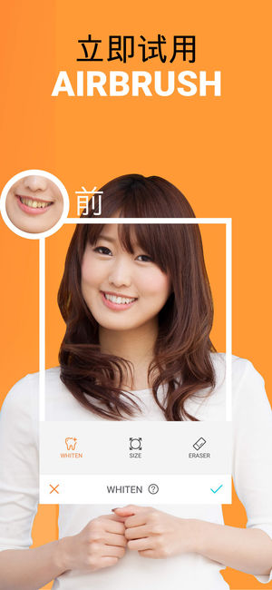 AirBrush专门为爱自拍的摄影达人而设计,为您带来最简单好用的体验和最自然的修图效果! •5星级| 9,000+条评论 ------------------------------------------------------------------------- 特色: 细节修饰 •恼人的斑点粉刺,轻轻松松,一键抹去! 迷人笑容 •牙齿美白功能,让您看起来像是刚从牙医那里出来的一样哦! 完美肤色 •精细的磨皮效果,让你的肤色看起来无暇透亮! 遮瑕 •再也不用担心光线不足或者疲惫长夜影响到你在镜头里的发挥了! 亮眼 •一键操作,带出你眼里的明亮深邃 景深效果 •使用“模…