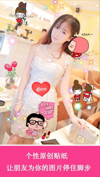 美贴专门为爱漂亮的女孩子打造!给照片添加可爱的贴纸,让照片瞬间美美哒,萌萌哒! 专为爱自拍的女生量身定制,颠覆传统自拍效果,瞬间自动美颜,效果比化妆品神奇! ===== 特色亮点 ===== •海量贴纸• 给图片添加可爱的个性贴纸,照片瞬间美美哒! •特效美化• 海量炫彩特效,让照片炫彩多姿! •自 拍• #一键变美# 一键让你的肌肤瞬间完美无暇!傻瓜式操作,七个美颜级别,量身打造你的美丽! #效果出众# 全自动磨皮、美白、降噪、瘦脸、美化眼睛,让你拥有嫩白肌肤、尖俏小v脸! #人脸识别# 通过智能的人脸识别技术和极速美颜算法,皮肤和头发细节完美呈现。 •高级美颜• 1、一键美颜:只需按一下,即可变美,7种美颜风格,比化妆品还神奇; 2、磨皮美白:让皮肤白皙透亮,自然收细毛孔; 3、祛斑祛痘:轻松点掉烦恼的痘痘,祛斑不留痕; 4、瘦脸瘦身:划指间,自然修容,优化脸型,强效击退双下巴,提拉紧致瘦身,让象腿变长腿、胖妞变超模~ 5、祛黑眼圈:熬夜晚睡,也可以跟细纹、熊猫眼saygoodbye; 6、美化眼睛:让您1秒拥有水灵灵的大眼睛; 7、亮眼:加亮眼部轮廓,让你的眼睛明眸闪耀; 8、美颜特效:独家研发的多款细腻的人像特效,瞬间渗透,快速拥有惊艳面容; 还支持分享到instagram、facebook、line,赶快下载体验吧! 如果觉得好别忘记告诉朋友哦!