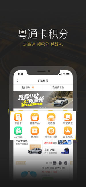 ——粤通卡•ETC车宝:ETC车主必备App—— *粤通卡•ETC车宝* 是粤通卡旗下官方车主服务平台,是向车主提供粤通卡业务办理、汽车生活服务的手机App。应用内主要提供粤通卡充值、粤通卡账单查询、粤通卡积分兑换以及在线加油、车务办理、洗车保养预约等一站式车主服务,致力于成为车主专属的汽车生活服务助手。 ——功能和服务—— 【粤通卡服务】在线充值粤通卡,实时查询高速公路通行账单;特别推出粤通卡积分,走高速,领积分,兑好礼; 【开四停四工具】手动/根据高速通行记录自动标记行车日期,轻松掌握广州限行规则; 【违章轻松查】快速查询全国违章,官方授权数据,专业可信赖; 【车宝惠加油】支持更多油站,…