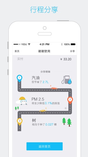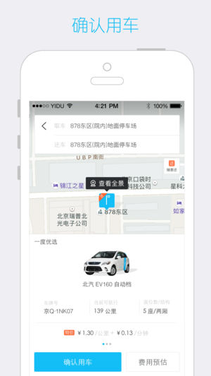 一度用车致力于推行“分时租赁,易行零排”的理念,打造绿色出行概念和新型汽车消费文化。以灵活的租赁方式、便捷的借还渠道,让用户免除用车、停车烦恼,轻松成为“有车一族”。 - 租赁方式:租车用户利用客户端定位到网点位置后即可前往取车。 - 租车费用:按分钟和公里付费,用车结束后费用会自动从绑定的信用卡中扣除。 - 汽车分时租赁平台,按时间和里程精准计费。利用APP实现租还车的所有环节,简单方便。 - 特色优势: - 租赁车辆为0尾气的环保型电动汽车。 - 价格精确到分钟,让租车费用更可控。 - 随用随走,不用随还,减少停车烦恼。 - 绿色自驾,一触即发。