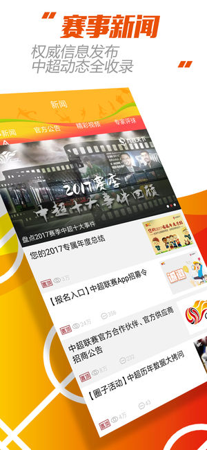 “中超联赛App”是中超联赛官方移动互联网应用,为球迷提供足球资讯、赛事、球队、数据、娱乐的移动互动平台,为球迷提供最权威信息服务,全方位实时覆盖中超的一切动态,中超联赛,一手掌握! 中超联赛App,现场赛况实时推送,比电视直播快的不止一点点,带给你最真实的中超赛场体验! 1、精准的中超赛程导引及对战信息; 2、专业的赛事数据分析、深度评论报道; 3、所有球员及球队资料、数据介绍; 4、全网速度领先的实时比分、技术统计、赛季排名; 5、2018赛季中超2400张球票任性送!更有签名球衣/足球、周边好礼送不停,您还等什么! 中超联赛官方网站:www.csl-china.com