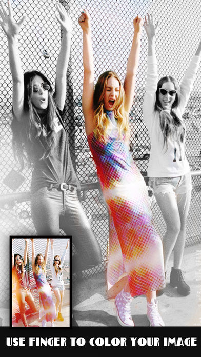 Want to create dramatic images by removing colors or changing them freely? Then you've found the right app! Pic Color Effects lets you use your finger as a Brush to paint any color, just to give photos a dramatic look and make them outstanding! Get it now! Features ================ + Load or take photo. + Recolor images with any color of your choice. + Gray to color and color to gray support. + Select brush size and offset. + Powerful photo editor. + Sharing via Facebook, Twitter, Instagram, Sms and E-mail.