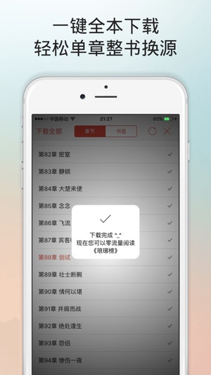 最优雅的阅读软件。 如果您就想有个看书,搜书,藏书的应用,那这个就够了,为纯粹阅读而生。 10M的体积,包含了极简设计,极致优化的态度,隐藏在大量细节中,您会感受到。 简约流畅的小说阅读器,全网小说搜索,一键全本小说下载,一键更新最新章节,轻松零流量阅读,经典完本,热门连载一网打尽。超全书库,优质校订。支持WiFi传书,隐私分组,体验友好的阅读界面,强大的记忆功能,打开即看,轻松自定义阅读习惯。 ◆主要功能 ● 全网小说搜索,支持小说名和作者搜索,没有找不到的小说 ● 一键下载全部章节,轻松零流量阅读 ● 美好的阅读界面,完美的间距,极致的对称,滚屏阅读,仿真翻页,左右上下平滑,夜间模式,…