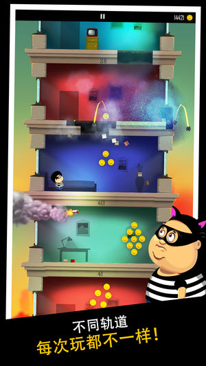 银行职员通常都友好和有礼。这一次出事了!拿尽可能多的钱!快!每个人都要抓你,但你很聪明,不是吗?查找赖以生存的提速组合,捷径和充电。 精采的特色: - 可击碎的障碍: 墙壁,家具和更多!可以的话便尽量破坏!撞碎墙壁,地板和看那碎片横飞! - 解锁可代入小偷和疯狂的充电 - 用视网膜屏幕显示图像 - 每次玩都不一样! - 只需一只手指控制!(刷上刷下) 快速上手即玩 - 游戏中心的成成绩和排行榜 - 普遍适用: iPad, iPhone 和 iPod Touch 原始分辨率 为你最大、最疯颠和最狂野的冒险之旅做好准备了吗?