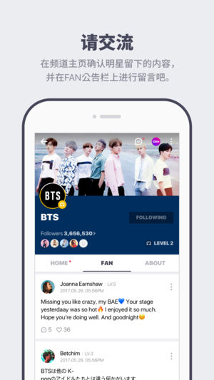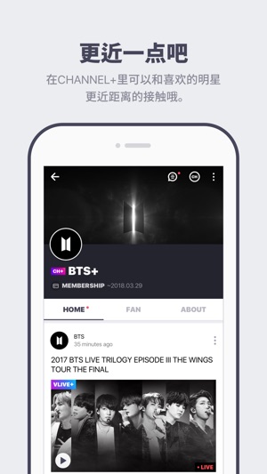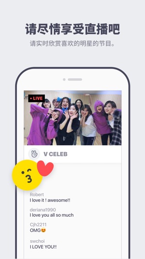 全球明星直播APP V LIVE *STAR'S REAL LIVE 去看明星的直播吧! 无论在全世界的任何地方,都可通过V LIVE和明星们一起度过当下这段时间。请确认在别的地方从未见过的明星们的新面貌。 *REAL-TIME COMMUNICATION 实时的和明星进行交流吧! 在看明星直播的时候可以实时的进行对话和送爱心。还可以确认在直播时聚集爱心而产生的特别的效果呢! *SUPPORT STAR 还可以帮助明星的创作活动! 可通过以粉丝会员资格为基础的付费频道CHANNEL+和可终身收藏下载以及高清观看的V LIVE+更紧密的跟明星进行交流吧! * VARIOUS CHANNE…