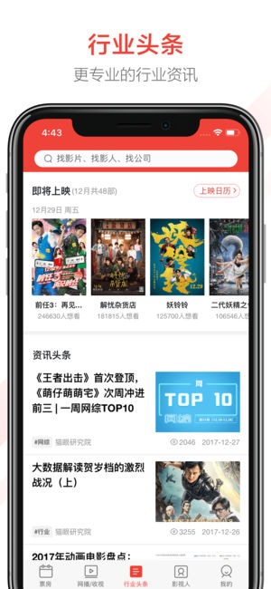 猫眼专业版,由猫眼电影出品,为电影行业从业者提供及时、精准、专业的电影票房数据分析(秒级实时票房,排片,影院经营数据等),为影视从业者提供信息互通平台,提高影视作品制作效率(剧组成员招募,行业精英对接,找剧组、投资、导演、演员、摄影等)。 主要功能: 1. 秒级实时票房:国内首款秒级实时票房查询工具,每分每秒掌握电影市场实时动态; 2. 票房预测+猫眼指数:洞察电影吸金潜力,提前把握影市脉搏; 3. 排片&上座率:国内最超前的排片查询工具,提前一个月查询热门档期排片,随时掌握各影片排片场次及占比,上座率及场均人次; 4. 电影营销监控系统:电影营销事件结合影片受众画像,有效量化营销效果,精准…