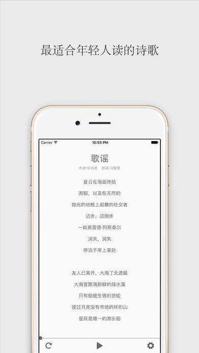 「青年读诗」2.0 正式上线 1.页面全新改版,简洁清新 2.修复了之前存在的 bug 「青年读诗」是一个专门用来阅读诗歌的应用 每天一首最适合年轻人读的诗歌:关于梦想,关于爱情,关于穿越世界的旅行... 每天一个有趣的年轻人为你读诗:乐队成员,环游世界的他,开一家咖啡店的她…... 这就是青年读诗的全部理想。 我们并不想要让大家都爱上诗歌,而仅仅想要尽量减少年轻的我们对诗歌的误解,慢慢地尝试接触诗歌的美好。因为你来人间一趟,总得见见太阳,读读诗,享受片刻的宁静和触动; 与此同时,我们这群95后出生的年轻人,更想要倡导一种诗意的生活,并尝试用自己的力量让更多有着共同信念的年轻人参与进来。他们热爱生命,他们相信生活不止眼前的苟且,他们想要过独一无二的人生并正努力奋斗着——而你也同样如此。 王小波说过,「一个人仅仅拥有此生此世是不够的,他还应该有诗意的世界。」 常常有人说,诗歌已死。可当世界放大镜头,满地都是渴望的青春的我们。无论我们读不读诗,总有那么一刻,内心里有一股说不清道不明,却异常发亮的信念,渴望改变,渴望爱情,渴望看看世界——那就是我们每个年轻人对诗意的向往。 我们希望,青年读诗能够陪伴你走过这段青春岁月,去过电影一样的生活。 诗歌不死,理想不灭。