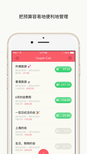 先顶一下预算,把支出管理成各个类目。 ‘小预算(Minibudget)'为了“管理一对男女约会的费用怎么样?”的目的而开始这种计划。 ‘小预算(Minibudget)'是从预算减支出的简单的预算日用帐。 定计划,旅游费用,简单的日用账。 还有,有让你们容易使用的预算支出功能。 约会或者旅游前,会做支出明细的模拟,在超市买东西的时候可以使用清单。 - 简单的预算管理 - 各个类目支出管理 - 用图表方便地确认支出内容 - 直观的设计 这是在银河系中最容易使用,最直观,使人们有意思。 把生活变成充实 丰饶!给你们的爱情加油! Think Human Designed by S…
