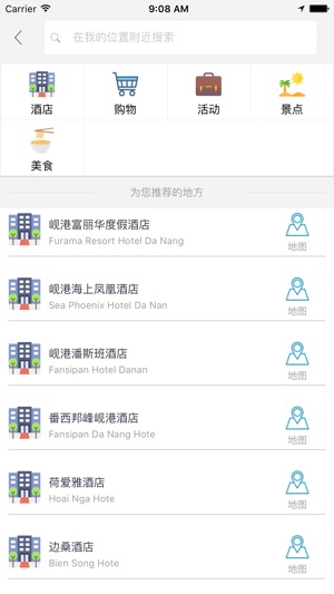 岘港中文离线地图是一款支持中文地名和酒店标注的地图。所有数据全部打包在应用中,在离线环境在完全可用,是去岘港旅游的必备工具。 主要特征包括: 1 地图数据完全离线 2 酒店全部中文标注,并提供酒店详细描述 3 部分重要地点中文标注 4 支持酒店查询,快速在地图上定位 5 支持景点、购物、美食、活动等信息在地图上的展示,并提供列表视图快速浏览 6 支持附近酒店、景点、购物、美食、活动的查询 7 支持离线路径规划