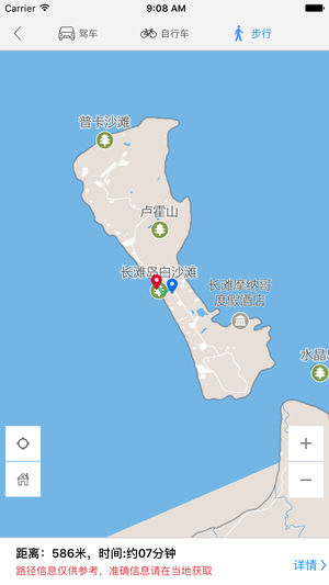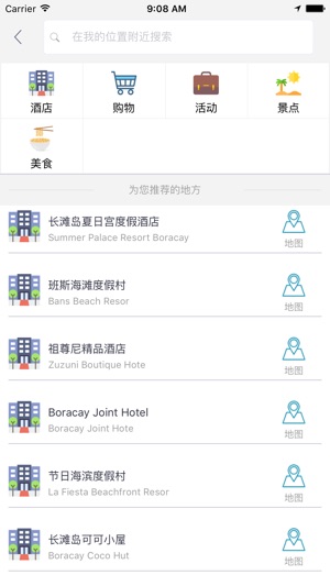 长滩岛中文离线地图是一款支持中文地名和酒店标注的地图。所有数据全部打包在应用中,在离线环境在完全可用,是去长滩岛旅游的必备工具。 主要特征包括: 1 地图数据完全离线 2 酒店全部中文标注,并提供酒店详细描述 3 部分重要地点中文标注 4 支持酒店查询,快速在地图上定位 5 支持景点、购物、美食、活动等信息在地图上的展示,并提供列表视图快速浏览 6 支持附近酒店、景点、购物、美食、活动的查询 7 支持离线路径规划