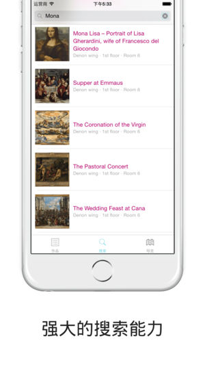 卢浮宫语音导览可以让你一边游览一边聆听每件艺术品背后的由来、精髓和影响。 功能包括: *拥有超过1000件的珍贵展品 收藏了来自不同地区、不同文化和不同时期的数千件珍品:涵盖古埃及、近东及中东古文明、古希腊和古罗马的古代艺术品;诞生于公元七世纪的伊斯兰艺术;还有从中世纪到十九世纪中叶的西方艺术 —— 雕塑、绘画、工艺品、印刻、素描等等 *语音导览,让你边走边聆听 一座人类文化的宝库,让你感受到每件藏品背后的故事,一边游览一边聆听。 *强大的搜索,瞬间找到你想要的作品 通过名字、关键字、展览室等的搜索,让你随时找到你喜爱的作品 *主题导览,让你的行程方便到达 简单便捷的地图,让你随时知…