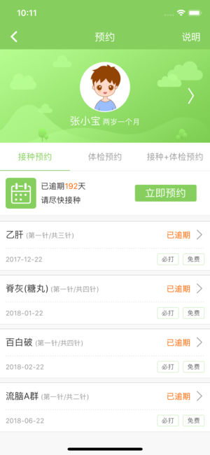 【应用介绍】 快乐疫苗 —— 安全接种 放心省心 快乐疫苗与全国多家接种点数据同步对接,实时跟踪宝宝的疫苗接种情况。家长自主在线预约接种、体检,不用再为排队烦恼,是您不可缺少的育儿伴侣。 【功能介绍】 接种证:宝宝种记录全掌握,防止缺种、漏种;知情同意书手机阅读,清晰便利。 查验接种证:随时随地下载宝宝的入园入学接种证明,方便、快捷。 预约:准确提醒宝宝疫苗接种、体检时间,家长在线提前预约,减少排队取号的等待时间,摆脱门诊无号的苦恼。 通知公告:随时随地接收医院的疫苗库存的最新动态,不必因门诊缺苗而白跑一趟。 问医生:专业儿科、疫苗医生入驻,在线免费咨询,快速查询儿童多种常见问题,及时解决家…