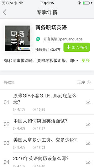商务英语流利说,以适应职场生活的语言要求为目的,内容涉及到商务活动的方方面面。教你如何和外国人打交道,如何和他们合作,了解他们工作的方式方法。 白领们不用到处找职场英语口语练习,有这一个英语应用就够了,练听力练口语,真不错! *碎片化时间利用,走路听,坐车听,睡前听,想怎么听就怎么听! 告别辅导班,英语随身听! *真人播音,专业指导,快捷方便,轻轻一点,循环播放,炫酷复读! *疯狂口语、全英文演讲、职场交流,各大人气电台随你挑! *在线听!离线听!循环听!边走边听!解放双眼,轻轻松松随身听! 你还在通过传统方式学英语吗? 快来下载商务英语流利说!边走边听英语,拾起零落的碎片时间,随时随地…