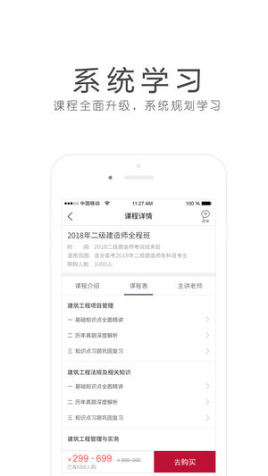 【简介】 1、环球网校官方手机学习应用 2、建工、财经、医卫、外语、职业资格、学历、公务员培训 3、15年培训经验,各类考试培训超高通过率 4、全国千位名师齐聚于此 5、为在职人群学习提供最高效率、最便捷的学习方式 【内容优势】 1、经济师辅导第一人刘艳霞、建筑名师王双增、造价名师夏立明、职称英语教父幺建华、执业药师名师曹秀格等千位名师齐聚于此。 2、百人教研团队,精心打造课程体系,牢牢抓住考试要点,让应试类学习变得快速、简单、轻松,铲除在职人员学习路上的障碍,轻松过关。 3、针对考试精准预测,以保证将学习精力分配到重点上,短时间突破,拿高分,保通过。 【功能特性】 1、在线流畅播放,音频…