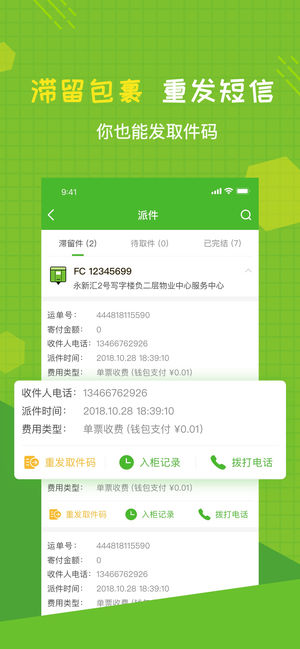 -------丰巢管家APP · 派件神器 -------- 服务广大快递员用户,是快递小哥的派件神器 收派件查询,格口租用,发送短信功能一应俱全 格口状态先人一步,VIP派件体验 丰富的福利活动,天天赚外快拿奖金 -------主要功能-------- 我的派件:派件状态随手查,贴心的滞留件提醒,一键重发取件码,在线即可修改收件人手机 格口查询:精准柜机搜索和自动定位附近柜机,双重搜索,格口状态我先知 运单查询:手输/扫描双重搜索方式为你贴心服务,快件状态随时查询 短信发送:随时随地给收件人发短信,一触即达!省钱又省心! 我的钱包:充值派件更省心,活动奖金随时提现,账单清晰又明确 格口租用…