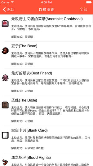 仅以此应用至我最爱的游戏[以撒的结合]。 这是苹果版的以撒的结合图鉴。这个图鉴主要分为4个大功能,其中图鉴页面,boss页面的话做了优化,还增加了小怪图鉴,基础掉落,房间等内容,总的来说发了不少时间来搞,内容也很丰富,请大家多多支持。 以撒的结合,并不遵循一般故事的叙事方法。它并没给我们一个清晰的解释,游戏的多个结局在多数玩家看来也几乎是随机而莫名的。为了理解故事,你必须自己拼凑线索。因此,这篇分析也可能存在谬误。 从表面上看,它可能像是个普通的搞笑独立游戏。游戏里的许多元素着实如作者所设计的一般荒谬至极,比如射烂大便来获取道具;尿自己一脸的BOSS;射出眼泪来攻击。不过《以撒的结合》在这黑…