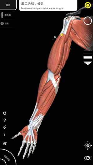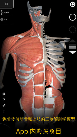 免费使用以下3D解剖模型: 骨骼标本(头骨、躯干和上肢) 韧带和肌肉(上肢) “肌肉 | 骨骼 - 人体解剖学3D互动图集”是下一代的三维解剖学图谱,为你带来互动性很强且非常详尽的解剖学模型! 整个肌肉骨骼系统已在三维中重建,您可以在每个模型上旋转和放大,从任何角度详细观察。 通过选择模型或大头针,将向您展示所有与特定解剖学部位相关的术语,您可以在11种语言中选择,并同时用两种语言显示术语。 “肌肉 | 骨骼”是一个有用的工具,面向医学和体育学生,也同样面向内科医生、骨科医生、理疗医生、物理治疗师、人体运动学师、医务人员、护士和运动员教练。 非常详尽的三维解剖学模型 • 骨骼系统 • 肌…