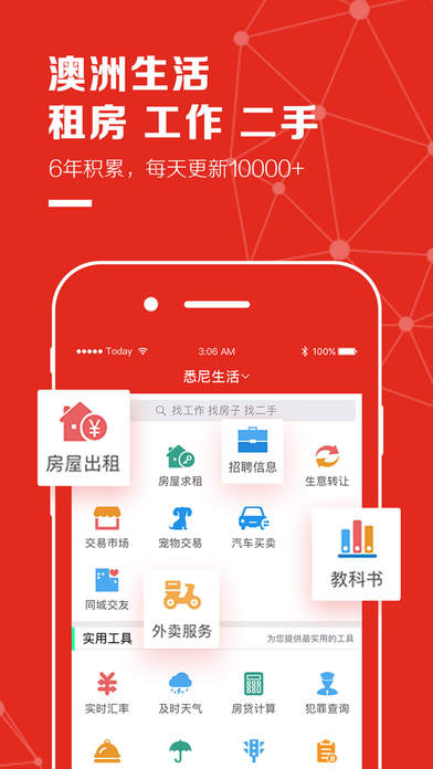 在澳洲,59万的澳洲华人选择今日澳洲看新闻、找工作、找房子! 今日澳洲由今日传媒集团(澳大利亚)荣誉呈现,是全球首款汇聚澳大利亚最新、最全、最多新闻,同时覆盖澳大利亚最丰富分类信息的中文手机客户端。今日澳洲,由今日悉尼、今日墨尔本和今日昆士兰共同组成,是目前全澳洲最大的互联网媒体公司!我们努力为用户提供最好看的新闻,最实用的信息! 这是一款神奇的App! 最强大的新闻系统: 现场记者搭配专业编辑团队,7天24小时为你精选澳大利亚这片神奇土地上发生的大小新鲜事,让你足不出户,只需要手指刷刷,就能知晓天下大事! 最全面的生活资讯: 留学or移民,这是一个问题!今日澳洲提供全面综合的留学参考、权威院校介绍、专业前景分析,零时差更新最新的移民动向...不管你是计划出国的学生,还是想要移民的海漂,都可以在这里找到你最需要的干货! 最贴心的生活服务: 找工作、搬家、租房、买卖教科书、二手汽车…资讯不够好捉急?今日澳洲帮你一键解决!你只需简单登录—发帖两步骤,秒秒钟就可以把资讯传遍全澳用户,免费又快捷,就是这么屌! 最良心的房产信息: 土豪还是屁民,都阻挡不了你在澳洲买房了!今日澳洲以专业媒体角度独立解读澳洲房市、分享权威数据、评估各大楼盘、推荐金牌商家,为你的投资保驾护航。不管你是在国内还是国外,再也不用担心自己不懂澳洲房产了,悉尼、墨尔本、布里斯班...各大城市任你选!