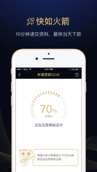 功夫贷是一款纯线上信用贷款APP,为急用钱的用户提供安全、快捷、方便的信用贷款服务。纯在线快审,1-10万贷款额度,6分钟可出。下载功夫贷,轻松申请,极速提现! 独创风控引擎,可实现在线迅速识别用户并极速授信,贷款最快1天到账。 贷款额度内任意提现,最长贷款期限为24个月,满足短期以及长期资金周转需求。 延长或缩短还款期限,无额外费用产生。一次授信,可终生循环贷款。 现已覆盖广东省、浙江省、江苏省、北京、上海、天津、重庆、湖南省、山东省、湖北省、四川省、安徽省、河南省、江西省、河北省、福建省、山西省以及其他全国大多数一、二、三线城市,有信用卡就可以借款! 【产品特点】 [快捷]输入个人真实基本信息最快6分钟即可完成授信;闪电审核,极速借款,1天到账 [灵活]3-24分期随还供您选择,充分配合您的还款计划 [方便]绑定相应银行卡之后即可一键自动还款,操作便捷简单