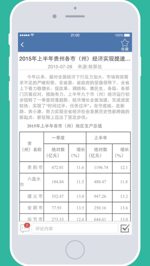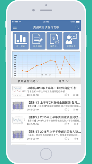 该应用主要应用于中国贵州本土统计类文章浏览,该软件把更多的信息放在手机端,以更新、更简洁、更直观的方式展示政府的公开信息。同时把枯燥的统计文章变的灵动起来,用图表代替文字,用动画来代替表格,让普通大众也能很容易的看懂文章内容。真正方便普通大众的阅读。