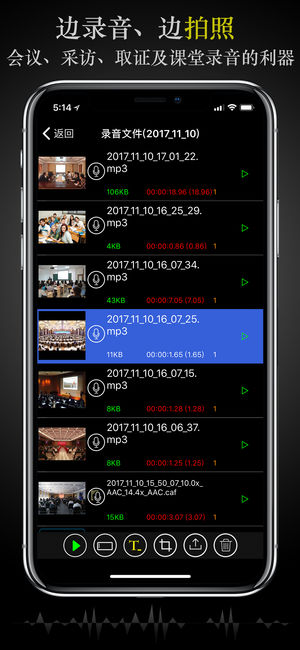 录音专家+是一款MP3录音机,可以边录音边拍照边手写标注,也是一个变声器。 相比录音专家免费版来说,此版本多了6项重要或便利功能,建议购买此版本:1、精准的裁剪录音;2、精准的混音录音;3、精准的拼接录音;4、照片浏览时支持上一张、下一张按钮操作;5、波形图选择界面支持点击更换开始时间和结束时间;6、手表空目录删除。 ●●●五年呕心沥血之作,超乎想象的稳定和强大●●● ●边录音、边拍照、边设定时间标点,会议、培训及课堂的录音利器● ●微信变声聊天,完全不一样的聊天体验● ●MP3格式直录,实现完全跨平台分享● ●录音+照片=视频,电子课件一键搞定● ●裁剪、配乐、拼接,随心所欲的编辑●…