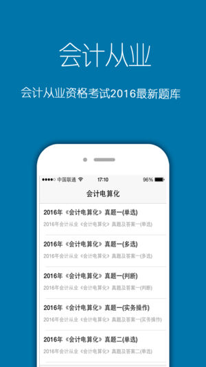 《会计从业资格考试题库》包含三个科目(即《财经法规与会计职业道德》《会计基础》《会计电算化》),结合最新考试大纲及最新考试动态、认真研究历年考试真题、综合分析最新考试信息、把握近几年考试的发展趋势,针对会计从业资格考试的不同题型、考点,开发了会计从业资格考试标准题库。各章题库均配有详尽的答案及解题思路,使考生在复习中达到举一反三的效果,从而轻松高效地备考。 其中2016年真题库包括: 2016年会计从业模拟真题一 2016年会计从业模拟真题二 2016年会计从业模拟真题三 2016年北京会计从业押题及答案一 2016年北京会计从业押题及答案二 2016年北京会计从业押题及答案三 2016…