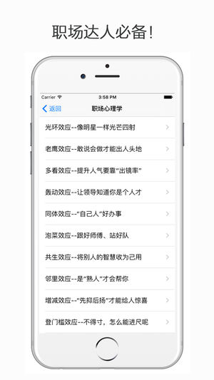 心理学百科包含了心理学效应、恋爱心理学、职场心理学等实用心理学知识,读懂心理学并灵活运用,定能让您的生活多些阳光和快乐!