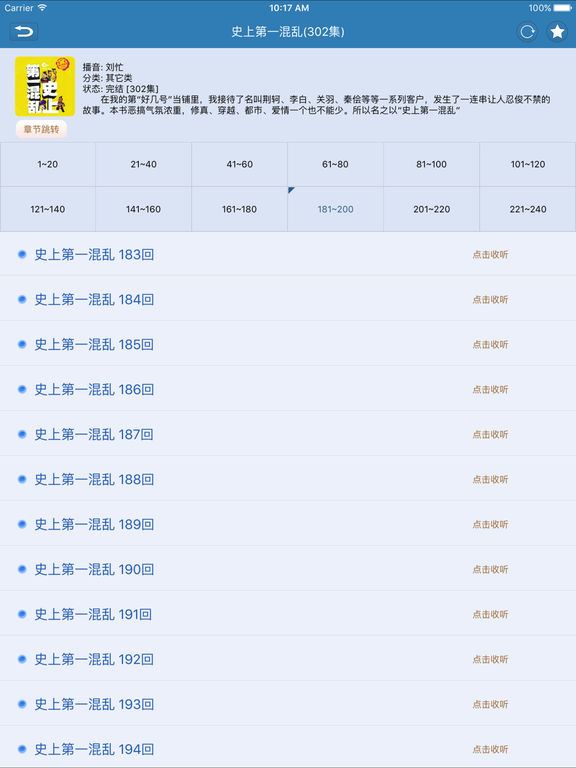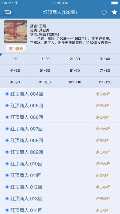 听书大全(听书神器) 包含各种有声小说,评书和相声小品,广播剧,言情小说,恐怖小说等应有尽有,内容丰富,种类齐全,全部免费,每天更新 是一款很棒的听书软件!