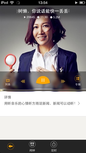* 精选最热门的资讯头条,最搞笑的娱乐段子,最经典的音乐歌曲,最实用的生活周刊 ! * 海量内容实时更新,超清音质,震撼享受! * 高大上的UI设计风格,极致用户体验,让你用过就不想换! * 一键点击即可订阅最喜欢的资讯、段子、脱口秀... * 完全免费 + 断点续听,听到极致! * 独特的“伴你入睡”功能,定时关闭,功能实用! === 内容概览 === 财经: 掌上财经指南, 教你做投资理财高手! 健康:女性必知的养生养颜秘笈,还有职场减压、孕妇保健、运动减肥等多方面的养生专题,每天听,养成养生保健的好习惯! 科技:关注科技前沿,看科学如何改变世界!多档网络播客为你带来最前沿的科技…