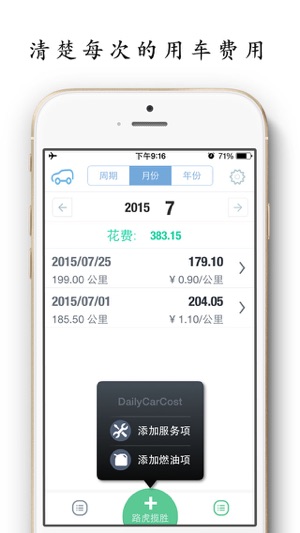 DailyCarCost:一款记录汽车所有消费的记账工具。 很多车主都知道每个月花了不少钱在自己的爱车上,却不知道每个月到底花了多少钱,也不知道这些钱到底花在了什么地方。 DailyCarCost 正是为了解决车主遇到的这些问题,现在您就可以随时随地记录和查看自己的消费支出,您也可以清楚的查看加油、洗车、维修和保养的周期和消费支出,让您更加了解爱车的使用情况。 提供年、月、周的汽车花费饼图与消费概况,能一目了然的读懂消费数据。服务于“有车族”,提供的记账类别涵概加油、洗车、美容、维修保养、车险、购置用品以及违规罚款,凡是车主车消费所涉及的内容都能记录在内。 特点: - ‣ 支持多车辆记账…