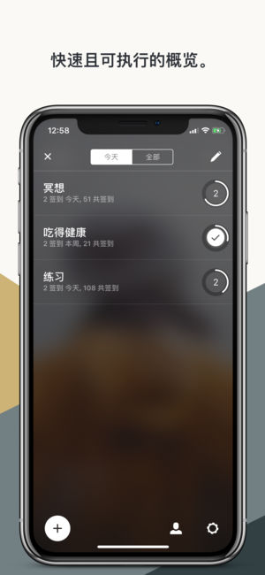 Today是您的免费个人习惯跟踪器,帮助您管理每日日程,养成改变一生的好习惯。利用Today依据经过行为科学验证的方法做出的独特的视觉化与奖励式设计,抛弃坏习惯,坚持好习惯。 Today的独到之处何在? 简单直观 Today的界面干净简洁,旨在帮助您追踪您的多种习惯和活动,只需简单几个手势,初次使用便能找对感觉。 照片封面激发动力 为每项习惯选择一张全屏照片作为封面,激发您的动力,从视觉上刺激您保持习惯。可从我们不断扩大的图片库中选择,也可任选您自己的某一张照片。 自定义卡片 Today是市面上第一款让您能为每种习惯创建完全自定义仪表板的习惯追踪应用,只需将以下提供不同功能的卡片加以组…