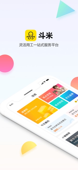 工作好·选择多·上手快,释放你的价值,上斗米找工作! 斗米-灵活用工一站式服务平台,由斗米兼职强势升级而来,致力于打造安全靠谱的招聘求职产品。 求职、招聘、找工作、做兼职时,无论你是大学生、上班族还是全职宝妈,斗米360°层层保障您的权益。身为58赶集集团旗下的招聘创新产品,拥有58同城和赶集网两大企业的强大资源支持,天天做不完的好工作,挣不完的高薪水! 蓝领找工作-美团、饿了么骑手、快递员、客服、电话销售就近分配,ofo、摩拜、瓜子二手车运营销售,斗米软件全都有,可全职可兼职! 白领跳槽-企业boss直招的找工作必备求职招聘软件,好工作斗米找,安全又赚钱多多! 大学毕业生-实习生兼职赚钱必备…