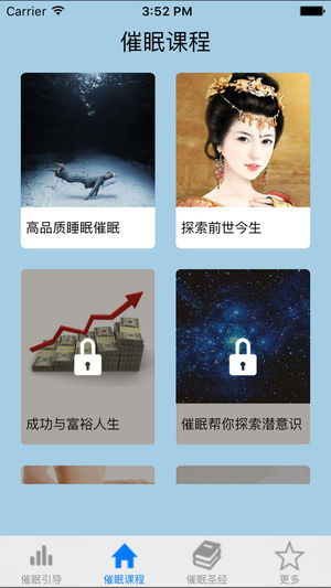 催眠术是一项古老而又充满活力的心理调整技术。是由各种不同技术引发的一种意识的替代状态。此时的人对他人的暗示具有极高的反应性。是一种高度受暗示性的状态。并在知觉、记忆和控制中做出相应的反应。 本软件包含十款催眠教程, 1、高质量睡眠:对于失眠的人,这是效果最好又毫无副作用的超级安眠灵药;没有失眠的人,也会帮祝你拥有高质量的睡眠,梦甜安然,身心舒爽。 2、催眠帮你轻松减肥:对于想减肥的人,一边轻松入眠,一边吸收对你价值非凡的指令,将脂肪细胞优化,自然而然养成符合身心灵健康之道的生活模式。无论男性女性,都适合使用,帮助你以最自然的方式,拥有理想的体重与身材。 3、催眠帮你孕育好宝宝:全世界…