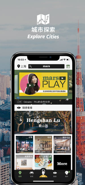 mars 团队每年飞行 50 万英里,伙同 700 多万城市发现家,四处 check in,发现东京更好吃的汉堡、上海随时可能关门的书店,纽约超酷的 rooftop bar,以及旅途中淘到的黑胶唱片,新发售的黑科技胶囊咖啡机,即将被达人热捧的洗漱包。mars 想把城市中更潮流、更具品质、更好玩的地点、好物、见闻全部集于一处,用这些「mars 城事」使你明白,生活方式的发条,随时能启动。 听起来口气很大的样子,具体来说,我们打算呈现这些东西: 「不用再问当地朋友了」 有时候想找一家特别的餐厅,或者想住一间当地更棒的设计酒店,抑或想在陌生的城市逛逛超酷的买手店;你能随时于各城市间切换,无论是…