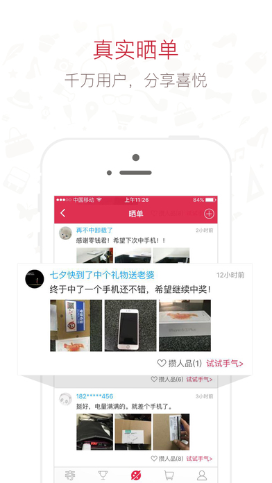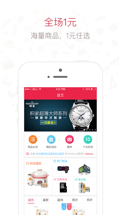 零钱夺宝,一家有情怀的众筹购物平台 1元,把你想要的带回家 已经有3527万人用1元获得商品啦 一元奇迹,每天每时每刻都在发生哦 【99元红包】 注册就送99元红包 我们就是这么壕 【10元秒开】 我们特意开设“十元秒开”功能 商品凑满后,秒开!就是这么爽 【如何玩】 知道这个app怎么玩吗?小编打个比方 把一条手环参考市场价分成100份,每份1元 当所有份数售出后 立即揭晓一名手环的获奖者 当然,你买的份数越多,中奖概率越大哦 【用户心声】 “第一次玩就中了个烤箱,本来是想中一个手机的,不过中了还是很开心的”——lo木木ve,白领。 “以为是忽悠我的,没想到真中了手环,快递小哥还打电话给我确认,服务不错。”——冰城二姐,家庭主妇 “太激动了,以为是假的,中了个手机啊。我都介绍给其他同学玩这款App了。支持零钱夺宝啊!”——勿忘我的小昕,学生。 【公平公正公开】 做夺宝平台,最重要的是公平公正公开。 感谢零钱夺宝用户近2年来的信任,我们会做得更好。 官方QQ:800190833 官方微信公众号:零钱夺宝 有疑问可以反馈哦,客服灵灵等着你 (最近有很多假的“零钱夺宝”在AppStore上线,小伙伴们得认准啊!我们拥有“零钱夺宝”商标权。)