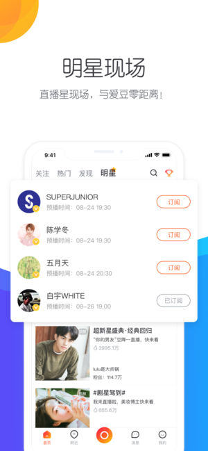 人生没有如果,每一天都在直播。 人生没有彩排,每个人都是主角 来一直播,做自己故事里的主角 随时随地想播就播~ 优势描述: 【明星大咖超级多】一直播是一款深受明星喜爱的直播app,你pick的偶像 tfboys、赵丽颖是我们的老板哦。我们还会不定期举办明星演唱会、粉丝见面会现场直播,门票送不停,精彩不间断! 【遇见送礼】当距离不再是问题,当你离她就只差一句hello的时候,让我给你开始的勇气,为你喜欢的小姐姐打call吧 【表白礼物】送礼去表白,爱要说出来[比心] 【娱乐频道】娱乐全聚合,更精彩的唱跳新势力~ 【尊贵座驾】送豪礼,开豪车,你的尊贵身份由你定义! 【优化体验】程序员哥哥加班加点…