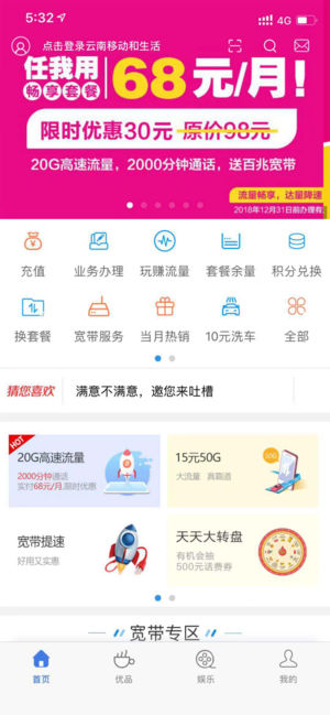 云南移动和生活由中国移动通信集团云南有限公司自主研发,是专门为用户提供生活便利的官方服务平台,该平台主要提供通信服务、话费充值、优惠活动、特产购买、生活服务等功能,是一款将通信服务和生活服务相结合的手机APP产品。 【通信服务】要装宽带?要买号卡?要办业务?要买手机?不用再去营业厅排队,云南移动和生活帮你搞定;查话费、查流量、查账单当然也不在话下了,云南移动和生活贴心为您服务。 【话费充值】云南移动和生活不仅提供便利的话费充值服务,而且还有充值优化,什么充值打折啊、话费券赠送啊,是常有的事。 【优惠活动】一个集话费福利、流量福利、特产优惠、手机优惠、宽带优惠等内容的优惠俱乐部。 【特产购买】向…