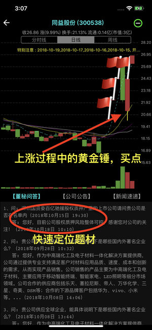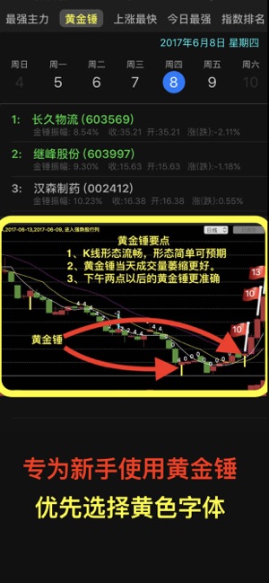 妖股助手专门研究如何快速找到当前强势股。软件算法经过近两年的实盘验证和不断的修正,基本上90%的强势股都会在启动时机被系统被选出来,呈现给大家。 软件内置交流群,方便大家交流。非常好用的一款工具。 【软件内置六个模块】 1、【黄金锤】 2、【最强主力】【上涨最快】 3、【今日最强】【低位股异动】 4. 【妖股二次异动】 另外系统会根据当天交易情况推送一只【每日一股】供你选择。 【强势股说明】 一只龙头股票上涨一般要经过 以下五个步骤 1. 盘整 吸收筹码建仓; 2. 洗盘 洗掉浮筹; 3. 涨停突破原有K线形态上涨 4.洗盘, 确定上涨无浮筹…