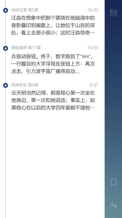 三体三部曲经典再打造,集合《三体1·地球往事》、《三体2·黑暗森林》、《三体3·死神永生》,完美呈现至今为止最好的中文科幻小说。 ~·作者及作品介绍·~ 刘慈欣,山西娘子关发电厂工程师。敦厚而狡黠的“60”后;冷酷而温情的中年宅;勾画时空图景的创造者;地球往事的说书人。1999年,36岁的刘慈欣发表了科幻小说处女作《鲸歌》。从这年开始,他连续十年获得中国科幻最高奖“银河奖”,并于2015年获得国际科幻最高奖“雨果奖”,成为亚洲首位获奖人。2008年,《三体1·地球往事》、《三体2·黑暗森林》出版,2010年底,《三体3·死神永生》出版,2014至1015年,前两部著作英文版在美国上市。至此,中国科幻小说的新纪元开始了。 ~·应用特色·~ 1.唯一一款专为三体而打造的正版阅读App! 2.考究到标点、字距的精致排版呈现! 3.特别设计的三部曲封面,向大刘致敬! 如果你还未读过三体,这款App将为你带来最畅快淋漓的阅读体验。 如果你已是大刘粉丝,这款App将陪伴你一起重温这首科幻史诗。