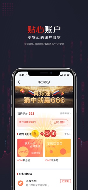 小方 - 您的移动财富顾问,数百万投资者的共同选择! 「小方」是由方正证券出品的,一款功能强大、稳定实用的投资炒股利器,为您提供实时的沪深港市场行情、前沿的财经要闻资讯、极速便捷的股票交易、一对一明星投顾贴身指导和丰富多元的投资理财产品。 ===== 特色功能 ===== 【轻松开户】 在线开户,安全便捷,1分钟完成股票、基金、OTC等账户开立,让您畅游股海、轻松理财。 【极速行情】 毫秒级行情,覆盖国内、港股市场的实时行情数据,助您抢先一步完美决策。 【闪电交易】 一键下单,人性化界面设计让您在普通交易、港股通和两融交易中得心应手,决胜股市。 【专家在线】 六百位金牌投资顾问在线服务…