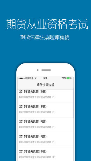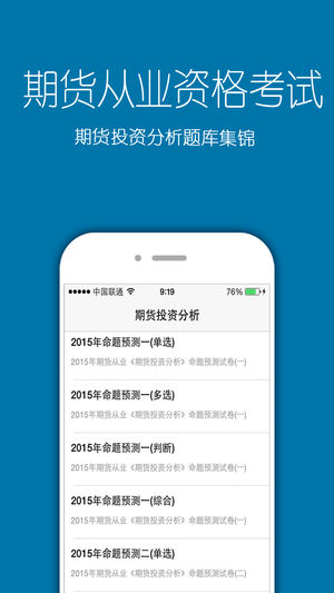 《期货从业资格考试》 应用介绍: 针对期货从业资格考试所制定的专业辅导软件,为从业考试学员提供《期货基础知识》《期货法律法规》《期货投资分析》最新题库。 真题解析——历年真题解析,模拟押题好伴侣 离线使用--无广告,无需网络,方便便捷。 期货基础知识 2015年期货从业资格考试《期货基础知识》真题汇编1 2015年期货从业资格考试《期货基础知识》真题汇编2 2015年期货从业资格考试《期货基础知识》真题汇编3 2015年期货从业资格考试《期货基础知识》真题汇编4 期货从业资格考试《期货基础知识》权威预测卷1 期货从业资格考试《期货基础知识》权威预测卷2 期货从业资格考试《期…