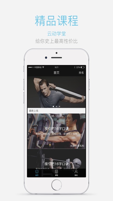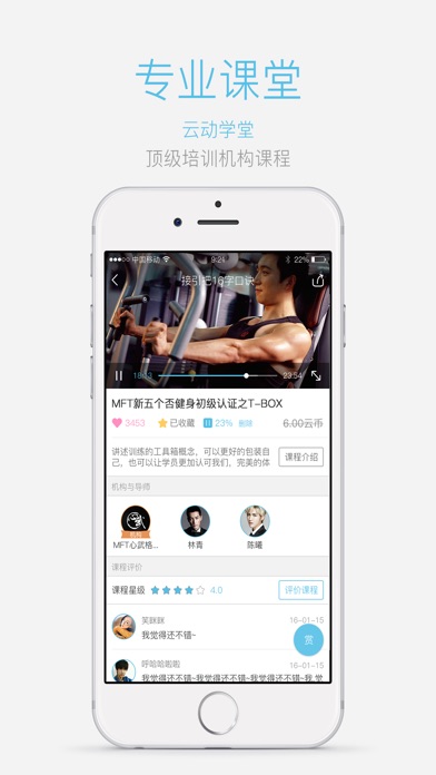 中国首家运动健身教育平台APP 云动学堂 - 随时随地进行学习 学习培训中经常遇到的问题: 1)工作太忙、路程太远,没有时间学习! 2)课程价格太贵,支付不起! 3)培训机构众多,不知如何选择! 云动学堂的解决方案: 1)每门课程2-8分钟,随时随地进行学习! 2)超高性价比,不足传统培训10%的价格,更可随时重听! 3)权威机构讲师把控内容!只提供最优质的培训课程! 最省钱的健身培训APP: 1)顶级培训机构课程; 2)碎片时间随处学习; 3)史上最高性价比;