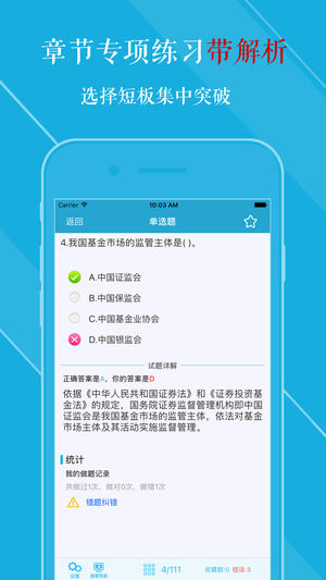 基金从业考试2018通关神器! 最新押题+章节专项练习+历年真题+考点解析+智能组卷,一款五星级评价的基金从业APP,好评如潮!13500道海量题库含解析,通关无忧! 全科目《基金法律法规、职业道德与业务规范》、《证券投资基金基础知识》和《私募股权投资基金基础知识》严格按照最新大纲,每一道试题都有答案解析,为考试的提供了充分的复习准备,可随时随地学习练习,有效帮助顺利通过考试,学习知识通过考试必备神器! 【用户评价】 以下谨附上用户的真实评价: ·IOS用户“ Yy1129”说:非常好用。已经考过了 。因为不想看书所以买了这个应用,里面的题都做了,模拟押题跟买的练习册的题一摸一样。分章节…