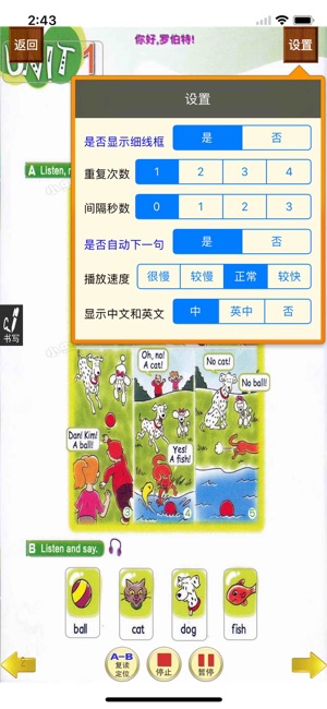 小虫子点读机,点哪里读哪里。兼容ipad和iphone。 本程序供学习新概念英语青少版教材(包括starter和1/2/3/4/5内容)的学生使用。 本程序除了像普通点读机一样能点读课本外,还能设置【是否自动下一句】、【朗读重复次数】、【朗读延时间隔】、【显示中文和英文】、【点读声音速度调节】功能。 具有复读功能。支持后台锁屏播放;同时支持划屏翻页操作。 具有书写功能,可以边听边写。 单词学习模式包括单词浏览、英文点读中文、中文点读英文、单词默写功能。 注意:本程序可点读内容仅包括官方磁带内容,并不包含所有书本内容,但为保证阅读的完整性,则程序包含了除点读外的其他阅读内容。