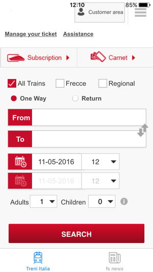 意大利火车时刻表是一款实时查询意大利火车时刻表的应用 - 意大利国内所有火车站的火车时刻表 - 按时间搜索 - 实时延迟状态查询 - 价格查询 - 在应用内直接购买火车票 - 搜索火车车次 - 详细的火车路线介绍