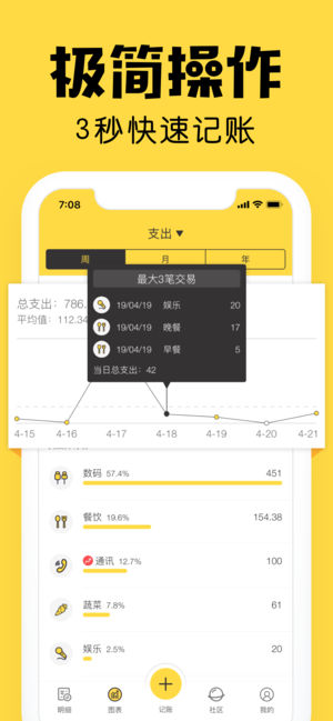 【产品功能】 3秒钟记账:极简的操作流程,让你3秒钟即可完成一笔记账操作 消费趋势:一目了然的图表,帮你快速分析消费情况 数据超安全:登录账号后,记账数据实时同步在云端 3D Touch:通过 3D Touch功能,可以直接进入记账页面 备注提示:强大的备注智能提示系统,让你记账的过程越来越简单 记账提醒:自定义每日提醒时间,再也不用担心忘记记账了 Widget:可以通过小部件来快速记账啦 【自动续费VIP套餐说明】 -- 订阅周期:1个月(连续包月产品),3个月(连续包月产品),12个月(连续包年产品)。 -- 订阅价格:连续包月产品为每月15元;连续包3个月产品为每月38元;连续包年产品…